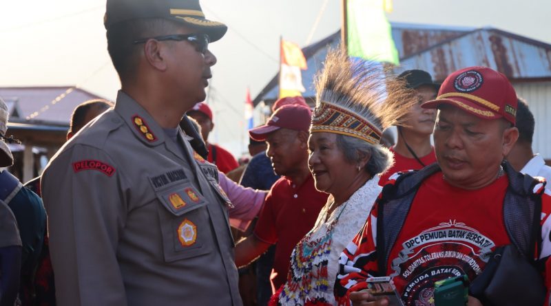 Jayapura Kota, WIT – Pelaksanaan Pesta Adat Peresmian Rumah Ondoafi Jouwe di Kampung Kayu Pulau dihadiri Kapolresta Jayapura Kota Kombes Pol. Dr. Victor D. Mackbon, S.H., S.IK., M.H., M.Si, Senin (4/7) sore.