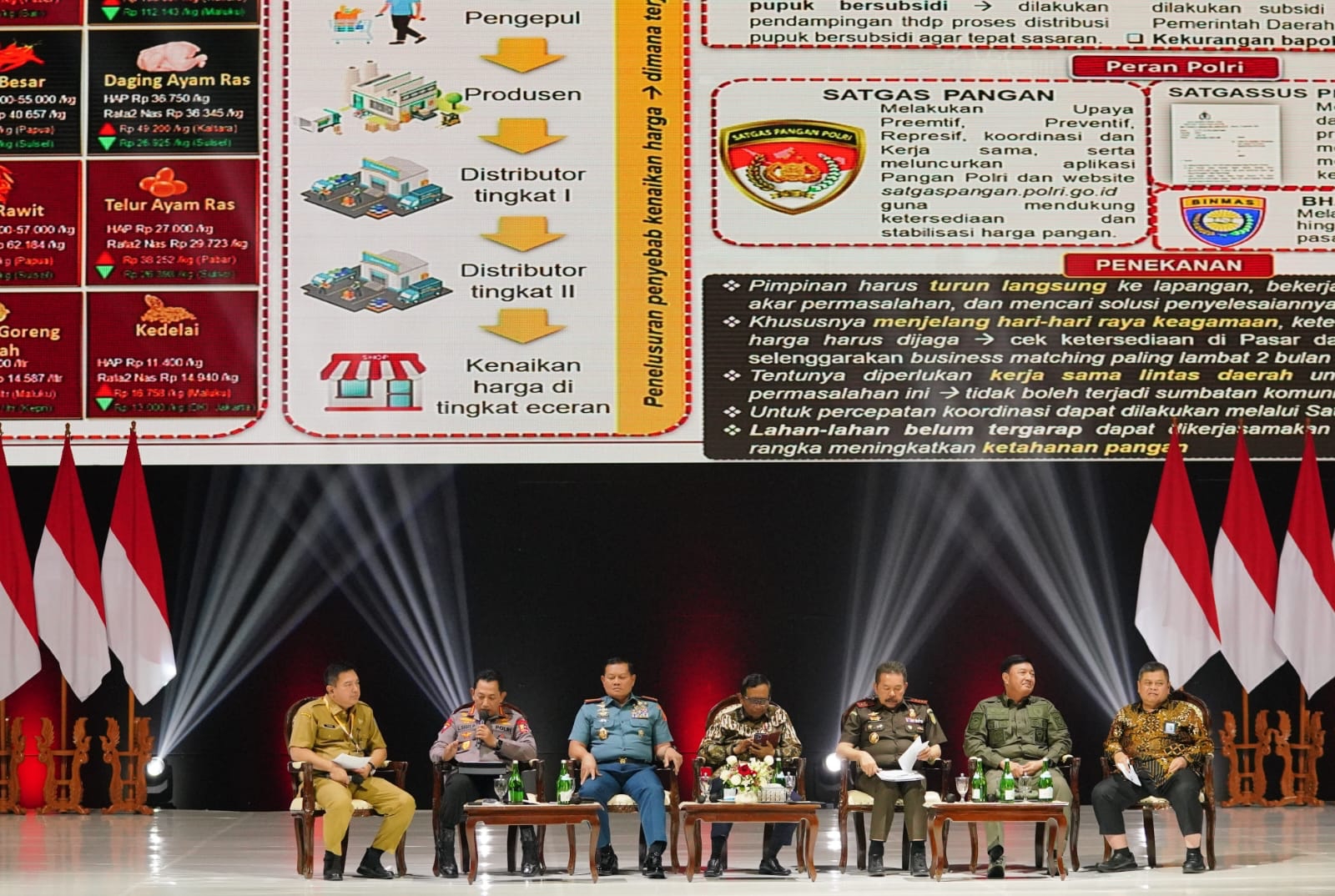 Sigit mengungkapkan, kepolisian harus menjamin ketersediaan dan stabilitas harga bahan pokok. Mengawal anggaran negara sebagai shock absorber, penguatan investasi dan hilirisasi industri serta menjaga pasar domestik.