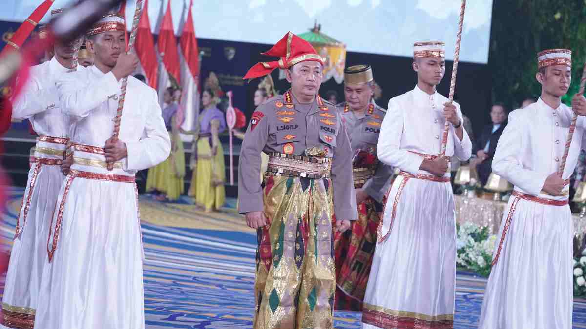Sulsel – Kapolri Jenderal Listyo Sigit Prabowo dianugerahi gelar Raja atau Karaeng dan Pusaka Supakala dari Dewan Adat dan Kerajaan di Sulawesi Selatan (Sulsel). Penghargaan diberikan berbarengan dengan kegiatan pembukaan Rakernis Baharkam Polri, di Ballroom Hotel Four Points by Sheraton Makassar, Sulsel,(5/6/2024).
