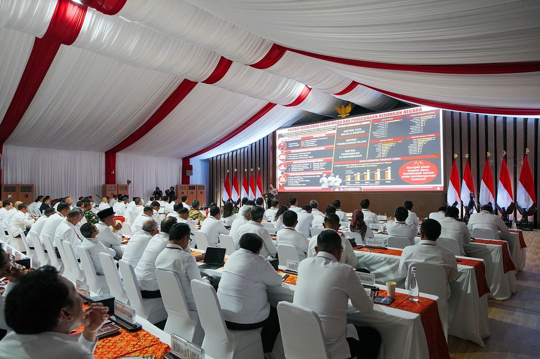 Dalam sambutannya, Presiden menekankan fokus dan komitmen masing-masing kementerian dan lembaga untuk bekerja mengentaskan kemiskinan, makan bergizi gratis, pemberantasan korupsi, swasembada pangan hingga swasembada energi.