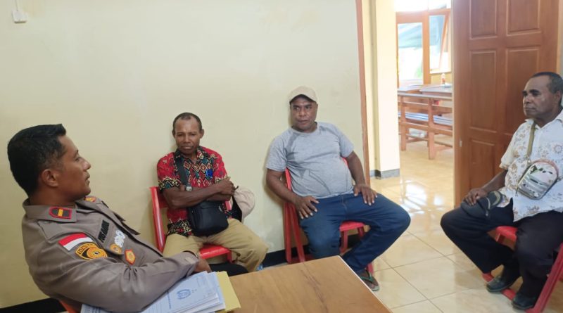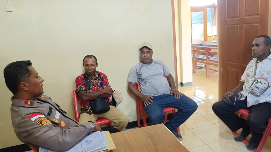 Sarmi – Kapolsek Bonggo, Ipda Yustus Maudul, S.E., M.Si., melaksanakan kegiatan silaturahmi dengan berbagai stakeholder di Distrik Bonggo Timur. Pertemuan ini diadakan untuk membahas masalah penutupan pelayanan kesehatan di Puskesmas Bonggo Timur yang disebabkan oleh pengrusakan yang dilakukan oleh salah satu warga. Kamis (29/08/2024).