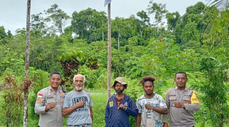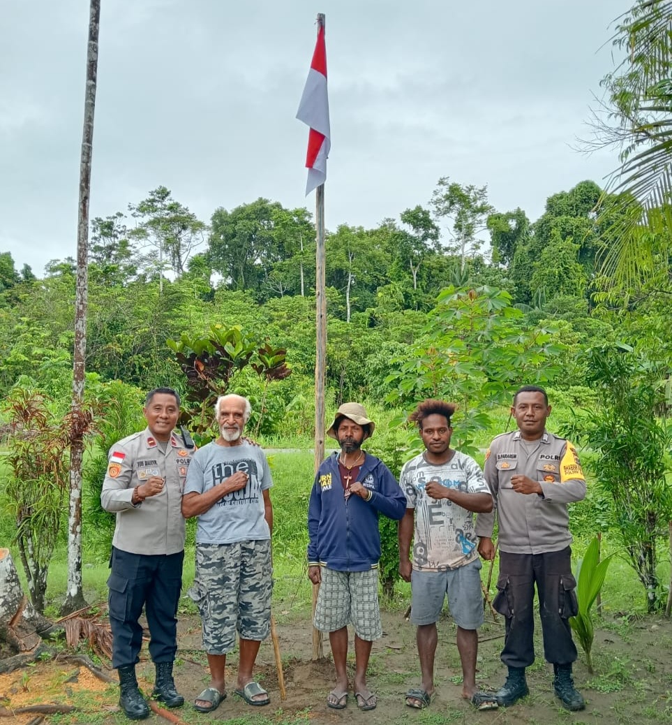 Kapolsek Bonggo Memberikan Bantuan Bendera Merah Putih kepada Ketua LMA Kab. Sarmi