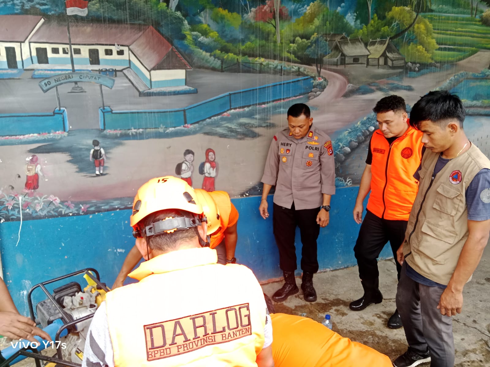 Kapolsek Serang Tinjau Lokasi Terdampak Banjir di SDN Ciputat, Enam Ruang Kelas Terendam