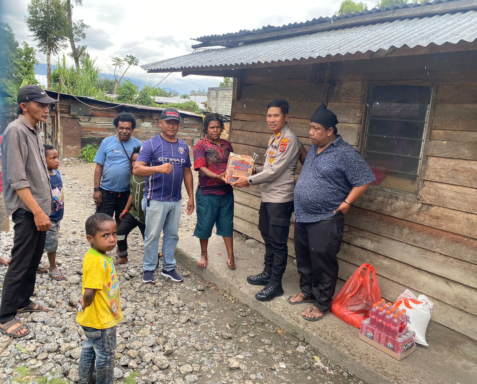 Kapolsek Wamena Kota Bersama Asosiasi Pedagang Pasar Jibama Bagikan Bingkisan Natal Kepada Masyarakat