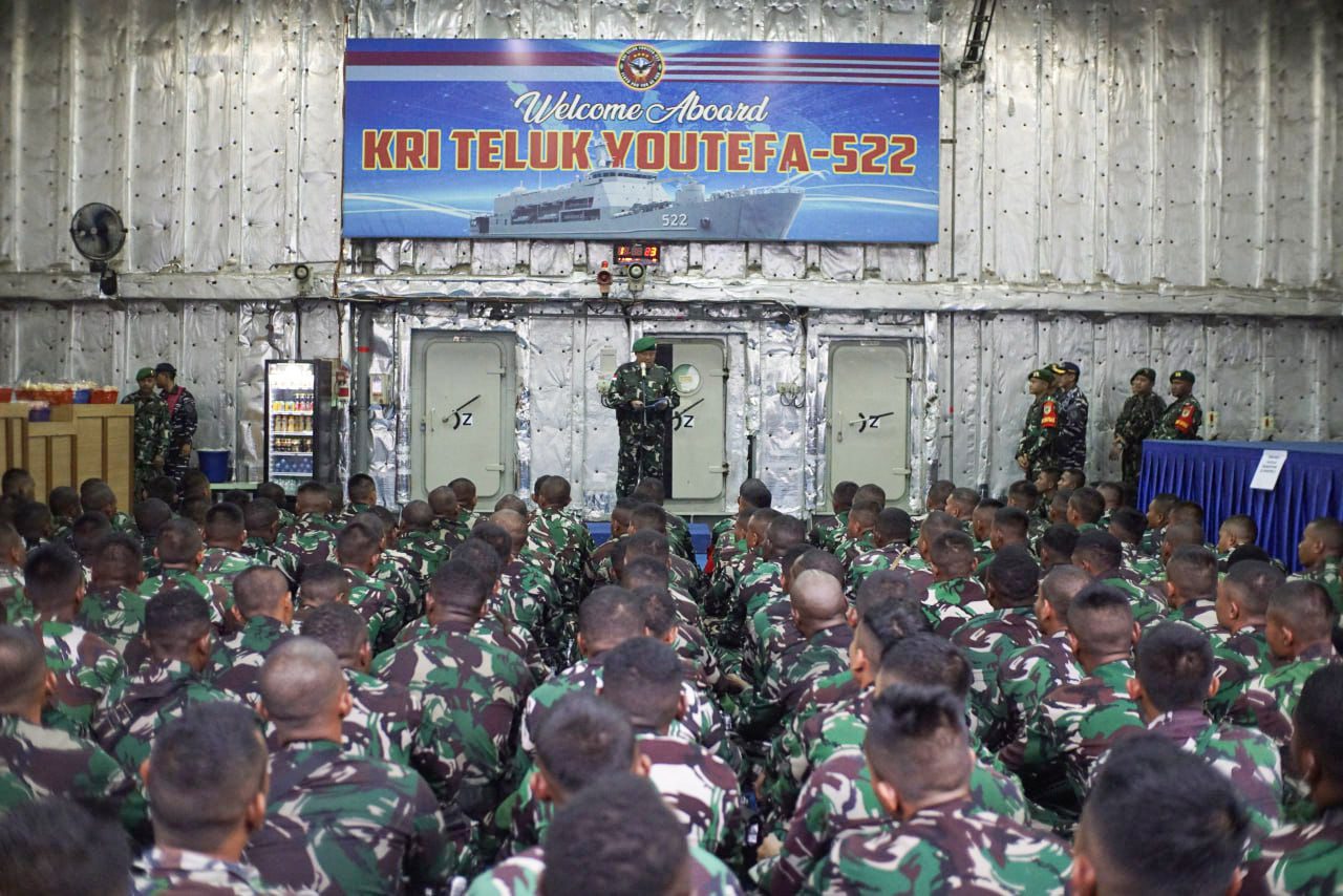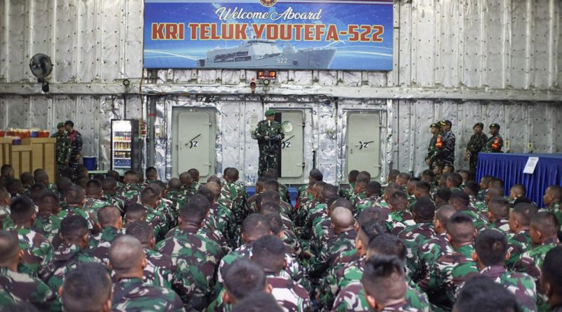 Jayapura – Kepala Staf Korem (Kasrem) 172/PWY Kolonel Inf Bobbie Triyantho mewakili Danrem 172/PWY memimpin Upacara Pemberangkatan Latihan Pratugas Yonif 756/Wimane Sili (WMS), bertempat di Dermaga I Pelindo, Kota Jayapura, pada Kamis (2/5).