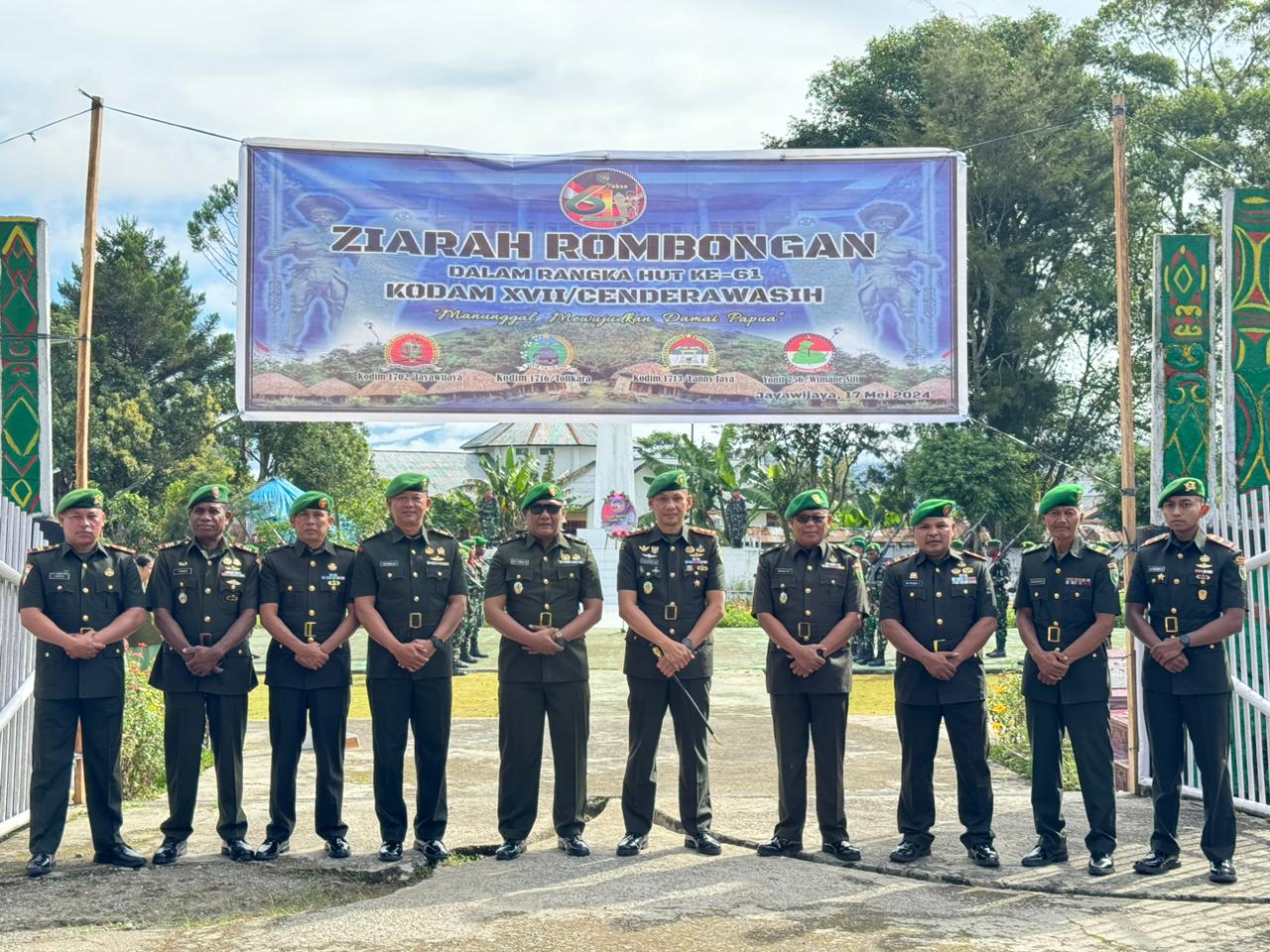 Untuk diketahui, rangkaian upacara ziarah dalam rangka memperingati HUT Ke-61 Kodam XVII/Cenderawasih diawali dengan penghormatan kepada arwah pahlawan dilanjutkan dengan peletakan karangan bunga, pembacaan doa dan diakhiri dengan tabur bunga bersama.
