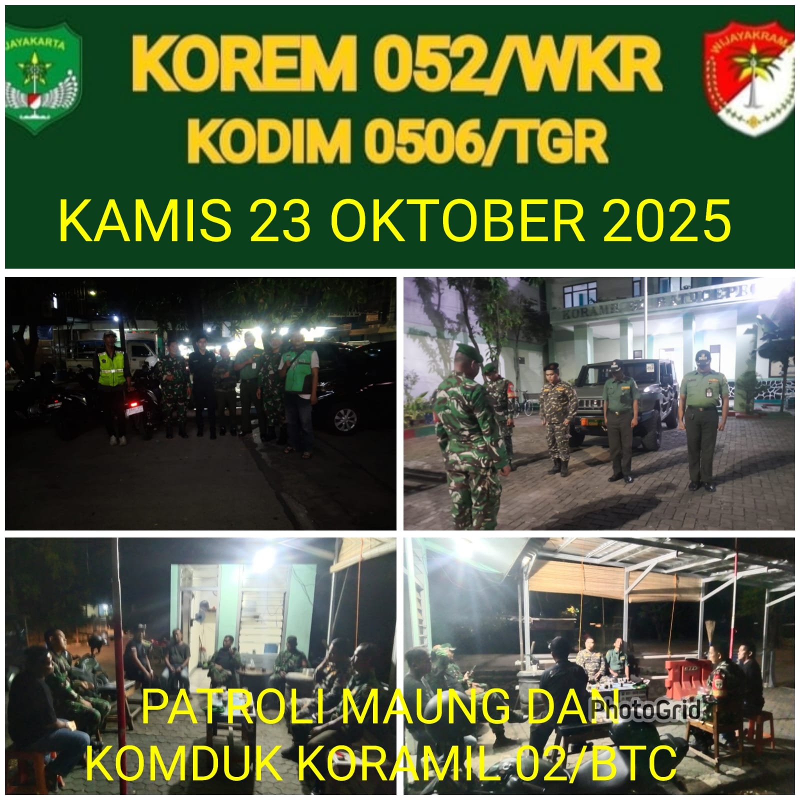 Kegiatan patroli bersama juga menjadi wujud sinergi antara TNI dengan Komponen Pendukung (Komduk) serta berbagai elemen masyarakat lainnya. Dengan kehadiran aparat di lapangan, diharapkan masyarakat semakin merasa aman dan terlindungi dari potensi gangguan keamanan di malam hari.
