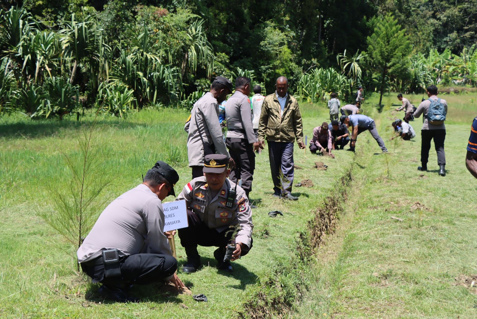 Lestarikan Negeri, Polres Jayawijaya Bersama Masyarakat Tanam Bibit Pohon di Kampung Elaboge