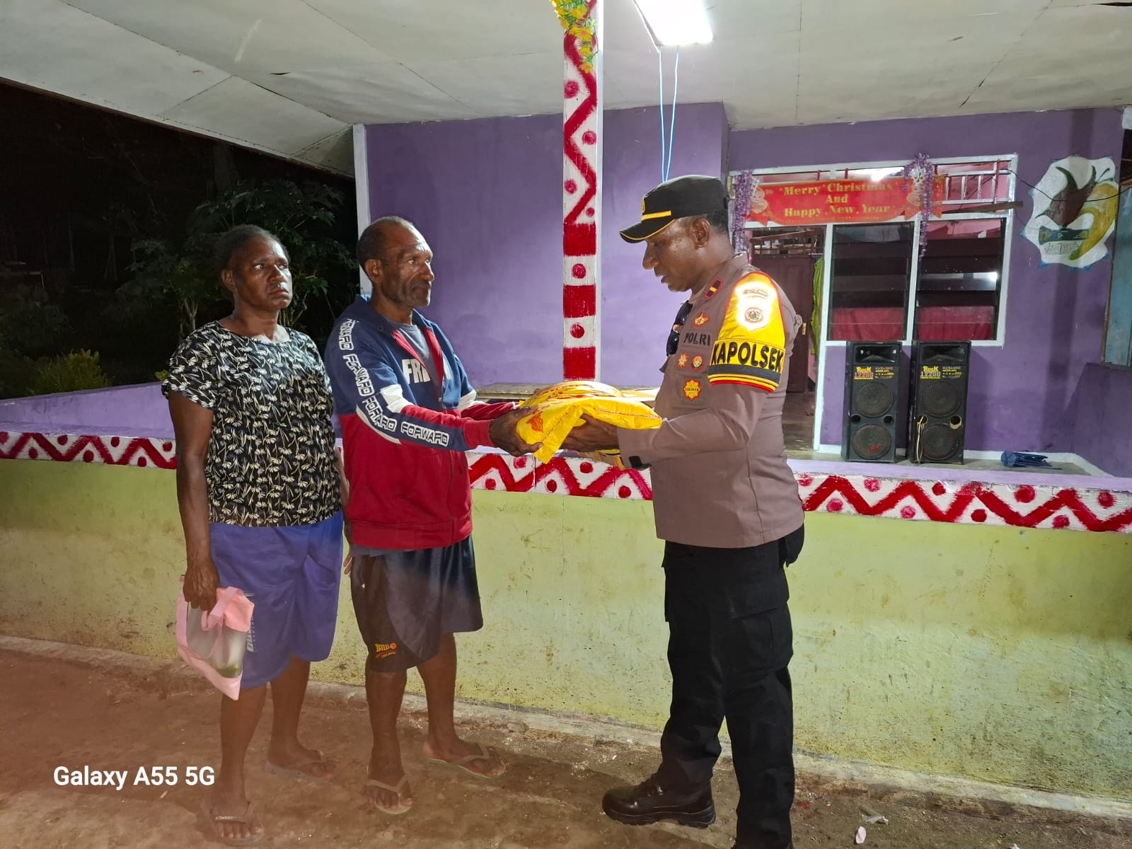 Sarmi – Mengetahui ada salah satu warga binaannya meninggal dunia, Kapolsek Tor Atas Ipda Sergius Mudumi., yang bertugas sebagai penanggung jawab sektor Wilayah Distrik Tor Atas langsung mendatangi rumah duka Almarhum Ismael Waken (60) di Kampung Omte Distrik Tor Atas Kabupaten Sarmi. Minggu (19/1/2025) malam.