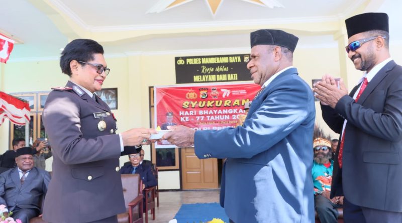 Burmeso, WIT – Upacara dan Syukuran Hari Bhayangkara Ke -77 Tahun 2023 dengan mengusung Tema “Polri Presisi Untuk Negeri Pemilu Damai Menuju Indonesia Maju” digelar di Halaman Mako Polres Mamberamo Raya,Sabtu (01/07/23).