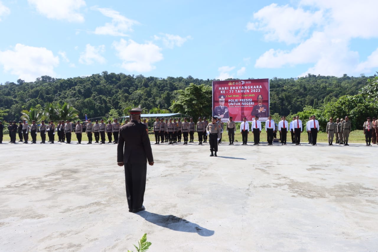 Wakapolres Kompol Jubelina Wally, S.H.,M.H mengatakan dalam Sambutan nya pada hari ini Instansi Polri Sudah berumur yang ke – 77 Tahun, Polri sebagai salah satu instansi yang berada di Negara Republik Indonesia tidak lepas dari tugas dan tanggung jawab yang telah di atur dalam UU Negara Republik Nomor 2 Tahun 2002,Polri mengemban tugas sebagai Pemelihara Keamanan, Ketertiban, Pelayan, Pelindung dan Pengayom masyarakat serta Penegakan Hukum.Ucap Wakapolres.
