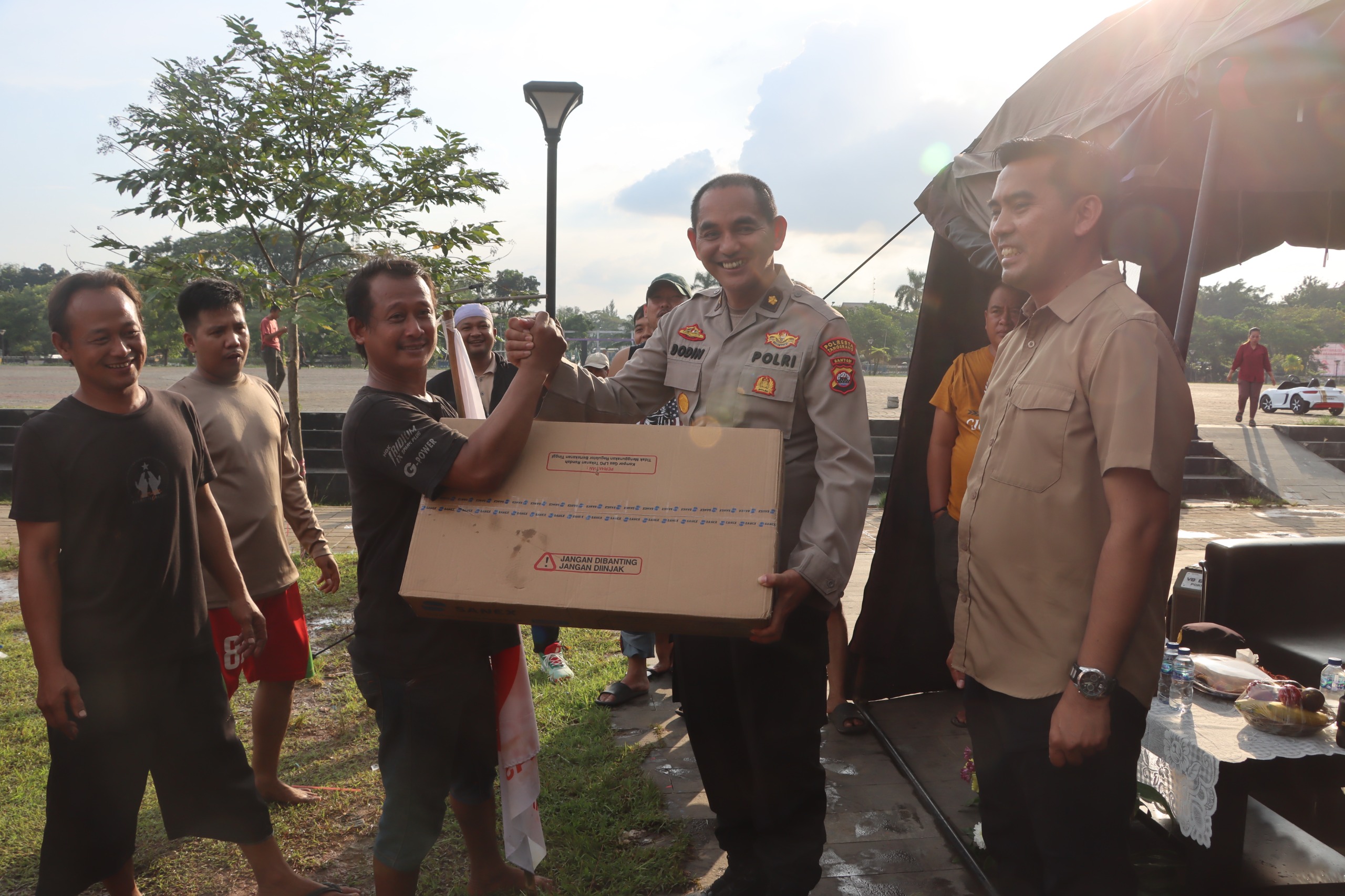 Kegiatan ini turut dihadiri oleh Direktur Tahti Polda Banten AKBP Eko Widodo, S.E., M.H. dan Kabagren Polresta Tangerang Kompol Dodin Awaludin, yang menyampaikan apresiasi atas partisipasi aktif masyarakat Kabupaten Tangerang dalam kegiatan peringatan Hari Bhayangkara tahun ini.