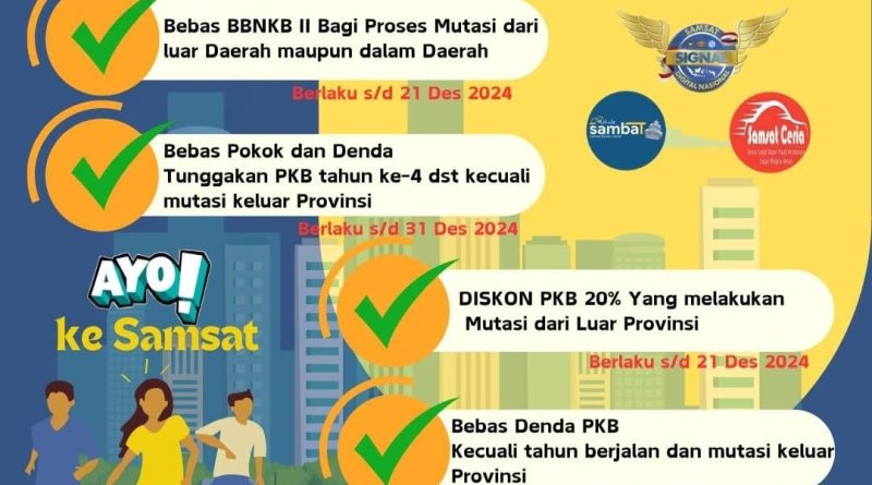 Pembebasan pajak dan bea balik kendaraan bermotor ini tertuang dalam Pergub No.18 Tahun 2024 tanggal 03 Oktober 2024.