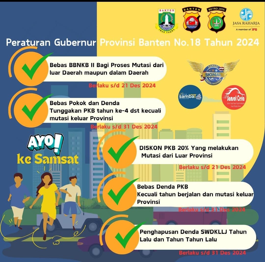 Pemprov Banten berharap kepada masyarakat Prov.Banten agar mengambil kesempatan baik ini dan berbondong bondong ke Samsat terdekat untuk membayar pajak kendaraannya.