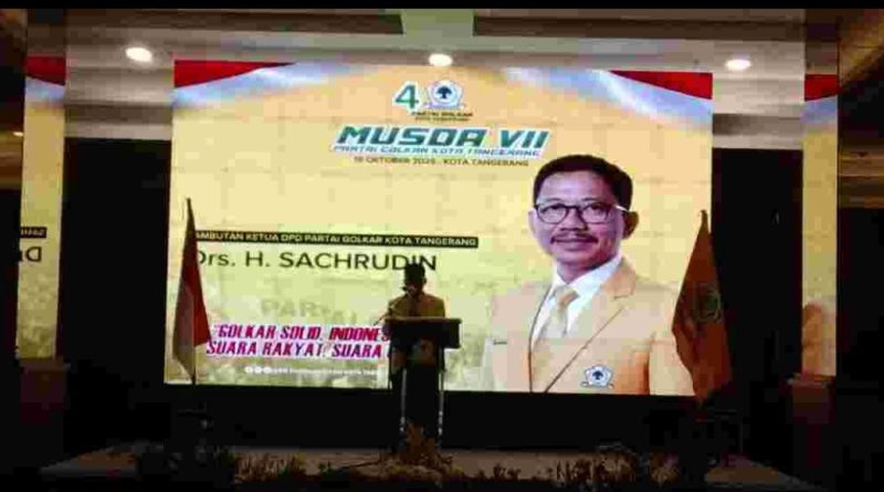 Kota Tangerang|wartaindonesiaterkini.com — Dewan Pimpinan Daerah (DPD) Partai Golkar Kota Tangerang menggelar Musyawarah Daerah (MUSDA VII ) di HOTEL TULIP Kota Tangerang, Minggu ( 19/10/2025 ) Secara Aklamasi H.Sachrudin terpilih menjadi Ketua DPD Partai Golkar