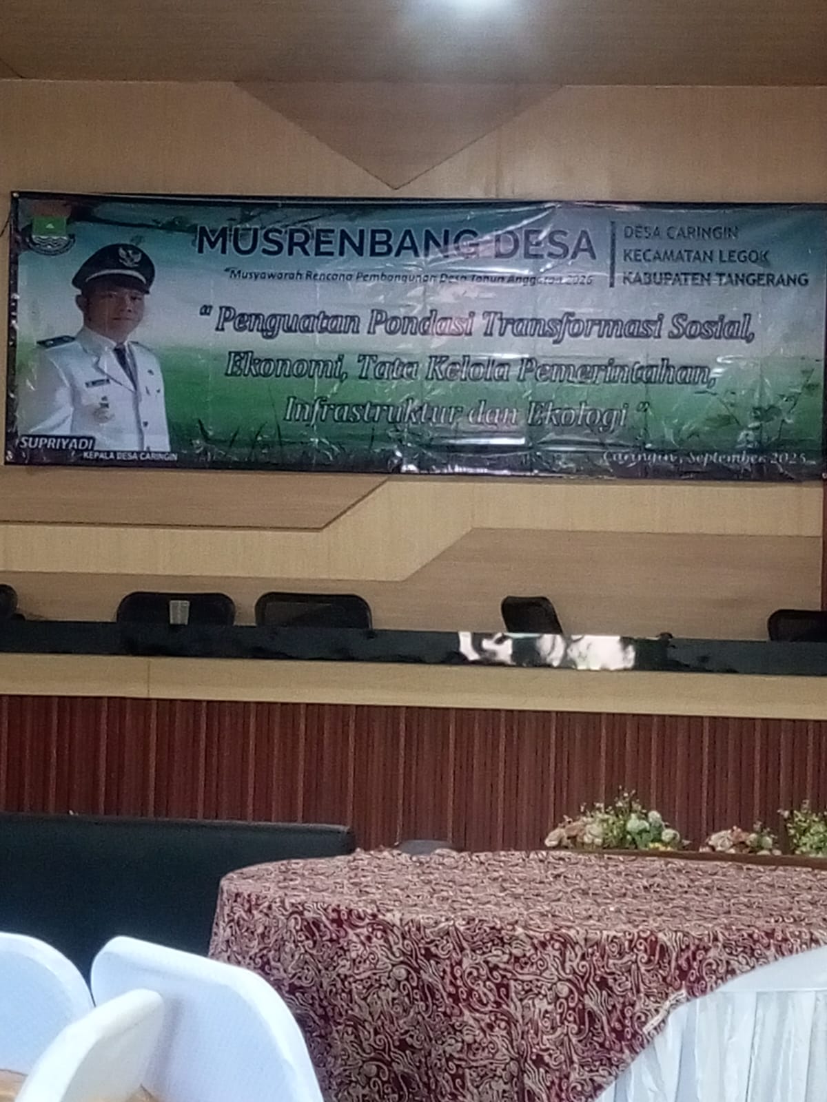 Desa Caringin, Kecamatan Legok, Kabupaten Tangerang yang ikut ambil bagian dari program kegiatan Desa Yang didanai oleh APBDesa tahun anggaran 2026, melalui pembahasan yang dihadiri oleh Camat Legok, Kasi Pemerintahan Desa Kecamatan Legok, Kades Caringin, Babinsa/Binamas Desa Caringin, Sekdes Desa Caringin, Jaro/RW/RT serta para tokoh masyarakat Desa Caringin.