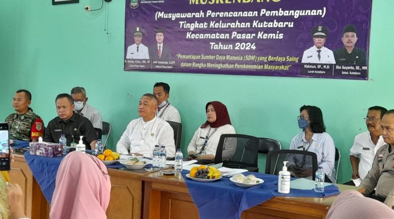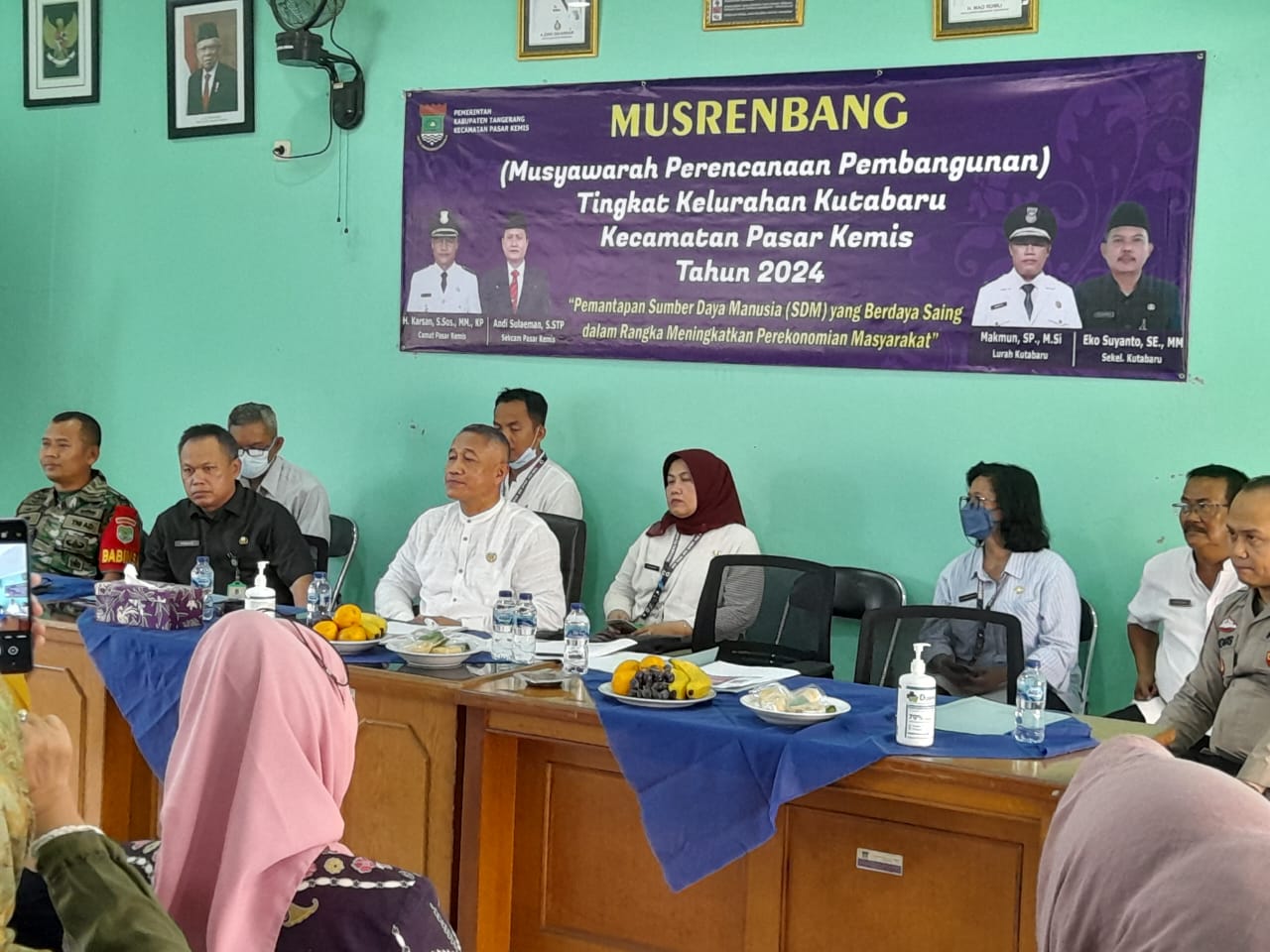 Berlokasi di GSG Kelurahan Kutabaru, Kecamatan Pasar Kemis. Kabupaten Tangerang, kegiatan Musyawarah Perencanaan Pembangunan (Musrenbang) Kelurahan Tahun 2023, dihadiri oleh Anggota DPRD, Fraksi PAN. AW Maulana, Camat Pasar Kemis. H. Soni Karsan. Lurah Kutabaru, Makmun. beserta jajaran dengan mengusung tema “ Pemantapan Sunber Daya Manusia (SDM) Yang Berdaya Saing Dalam Rangka Peningkatan Ekonomi” .