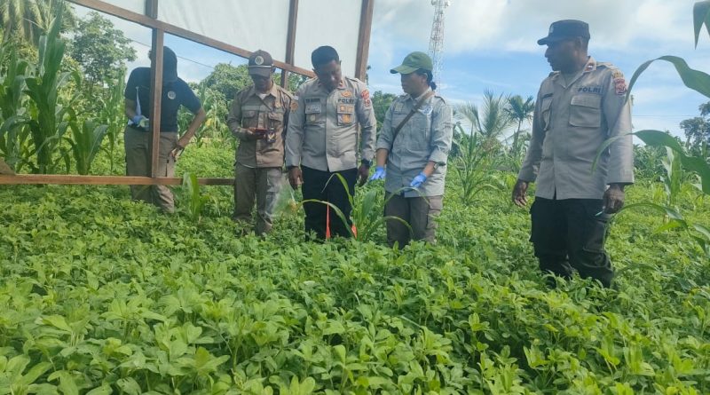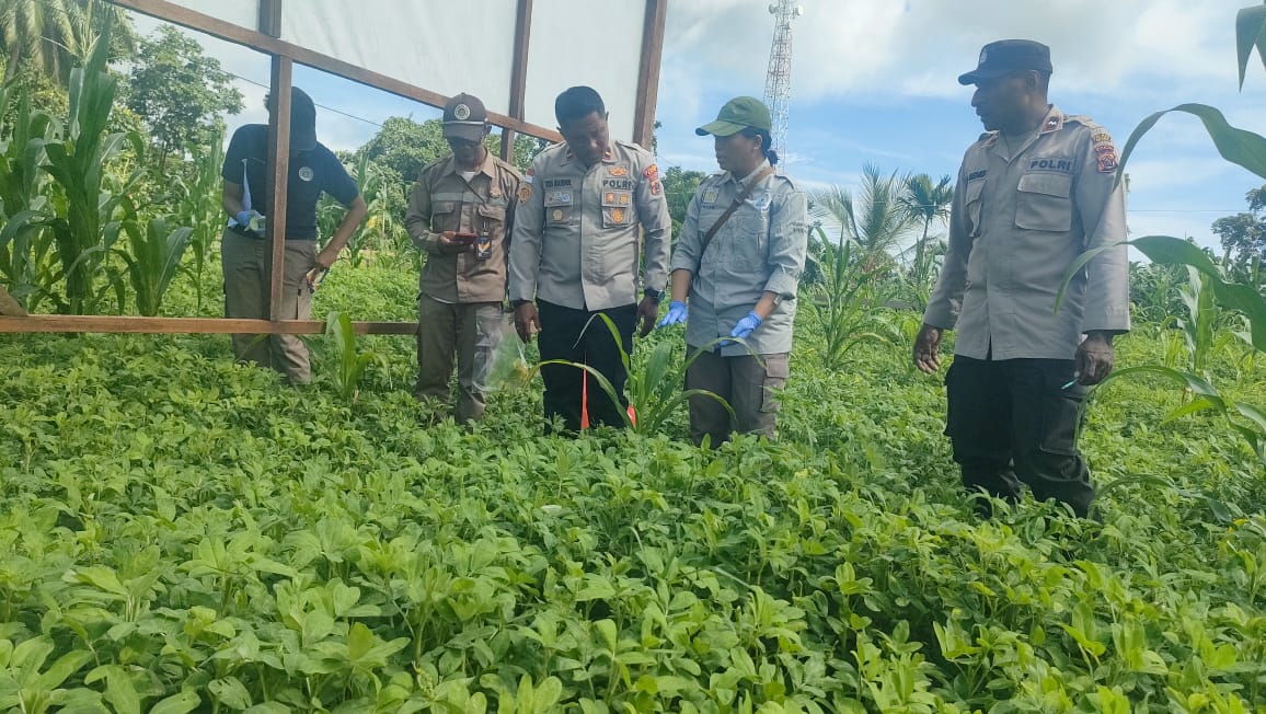Pada Pukul 09.30 WIT, Tim bertemu dengan Kapolsek Bonggo dan menyampaikan maksud dan tujuan serta ijin lokasi observasi hama di Kebun Ketahanan Pangan Polsek Bonggo kemudian Kapolsek Bonggo bersama Tim meninjau tanaman Kacang Tanah dan Jagung di Kebun Katahanan Pangan Polsek Bonggo sekaligus dilakukan observasi oleh Tim.