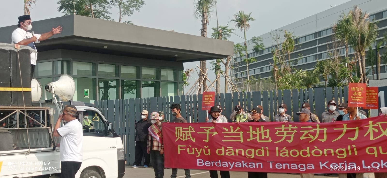 Massa tiba di gerbang pintu masuk Industri OPPO sekitar Pukul 14.35 WIB, langsung membentangkan spanduk ukuran 6 x 1 berbahasa Mandarin dengan terjemahan dibawahnya “Berdayakan Tenaga Kerja Lokal” tersebut mendapatkan pengawalan dari aparatur gabungan dari kepolisian dan TNI serta sejumlah Security.