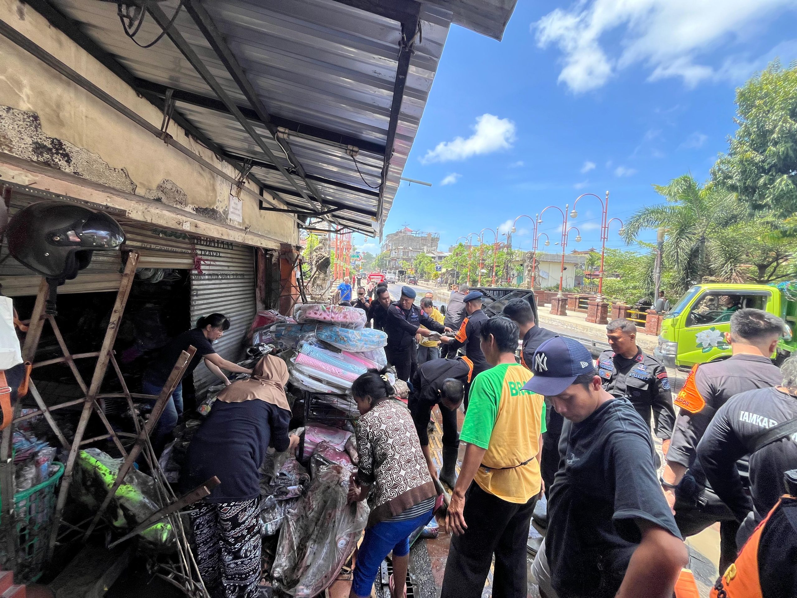 Kabid Humas Polda Bali Kombes Pol Ariasandy S.IK. mengatakan, pihaknya mengerahkan personel dari Satbrimob, Ditsamapta, dan Ditpolairud Polda Bali bekerja sama dengan TNI, BPBD, relawan, dan stakeholder lain. Mereka bahu-membahu membersihkan kawasan terdampak banjir bandang, salah satunya Pasar Kumbasari Denpasar.