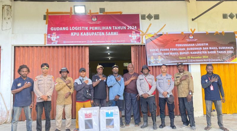 Sarmi – Lima Distrik telah selesai melaksanakan rapat pleno perhitungan suara, selanjutnya kotak suara digeser ke gudang logistik KPU Kabupaten Sarmi sejak hari jumat (29/11) Sore hingga Sabtu (30/11/2024) Pagi tadi dengan pengawalan ketat personil Polres Sarmi