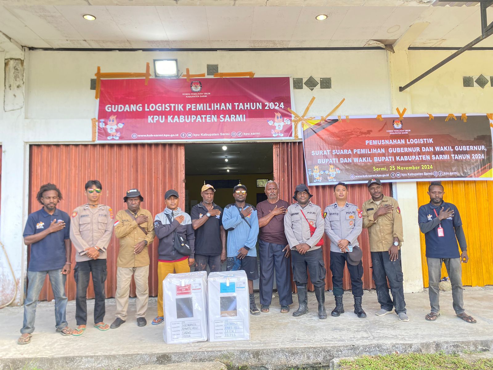 Pastikan Aman, Polres Sarmi Kawal Pergeseran Kotak Suara Hasil Pleno Tingkat Distrik Ke Gudang Logistik KPU