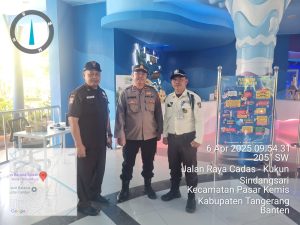 Dalam upaya untuk memberikan rasa aman, nyaman, serta kelancaran bagi para pengunjung, Polsek Pasar Kemis Polresta Tangerang turut ikut serta melaksanakan patroli di Obyek Wisata kolam renang di Kolam renang Batavia Splash di Grand Batavia Kel. Sondang Sari Kecamatan Pasar Kemis Kabupaten Tangerang. Minggu (06/4/2025).