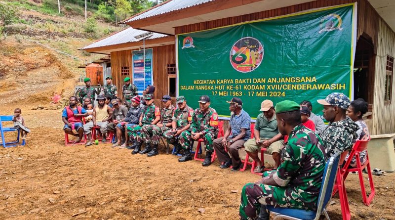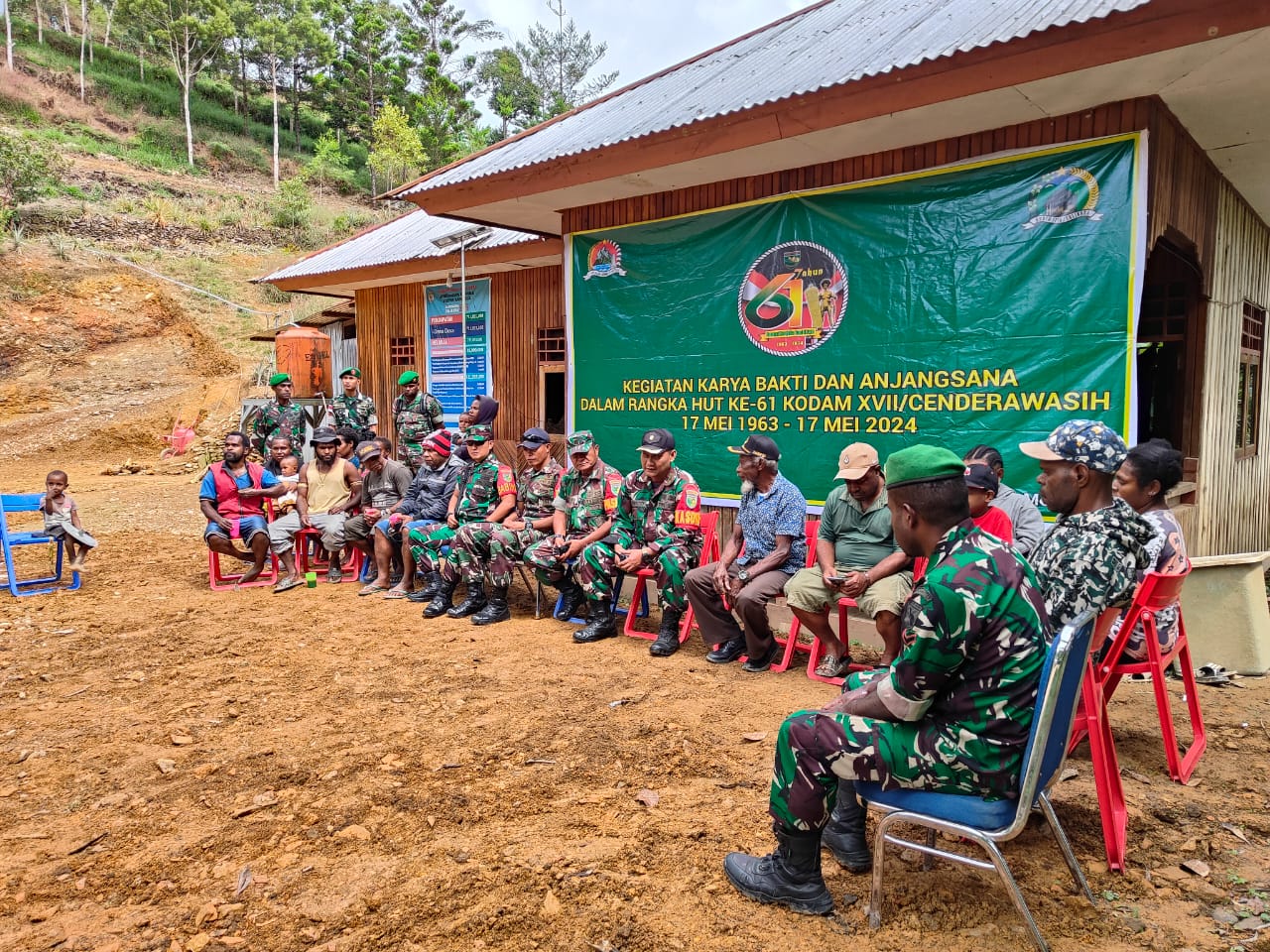 Karubaga – Kegiatan Anjangsana Dalam Rangka Memperingati HUT Kodam XVII/Cenderawasih Ke-61 Tahun 2024 yang dipimpin oleh Kasdim 1716/Tolikara Mayor Inf Edi Ponco Wibowo bertempat di Jln. Ifar Gunung Desa Karubaga Distrik Karubaga Kab Tolikara Prov Papua Pegunungan ( Rabu, 15 Mei 2024 )