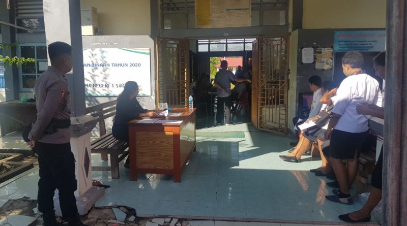 Kapolres Sarmi Kompol Suparmin, S.I.P.,M.H melalui Kabag Ops Polres Sarmi AKP Handry M. Bawilling, S.Sos., M.M. menyampaikan pengamanan yang dilaksanakan oleh Polres Sarmi bertujuan untuk memberikan rasa aman dan nyaman kepada peserta tes sehingga peserta bisa fokus mengerjakan tes tanpa adanya gangguan dari luar.