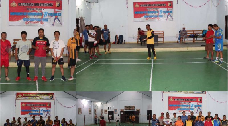 Mamberamo Tengah, WIT – Bertempat Di Aula Wira Satya Pradhana Polres Mamberamo Tengah berlangsung Turnamen Bulu Tangkis Dalam Rangka Memperingati HUT Bhayangkara Ke 77 01 Juli 2023.