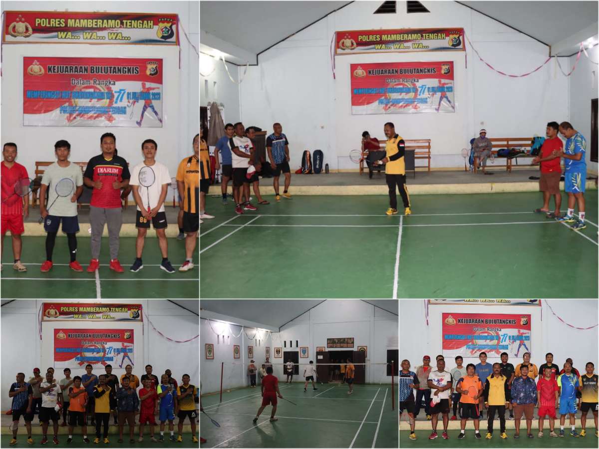 Mamberamo Tengah, WIT – Bertempat Di Aula Wira Satya Pradhana Polres Mamberamo Tengah berlangsung Turnamen Bulu Tangkis Dalam Rangka Memperingati HUT Bhayangkara Ke 77 01 Juli 2023.