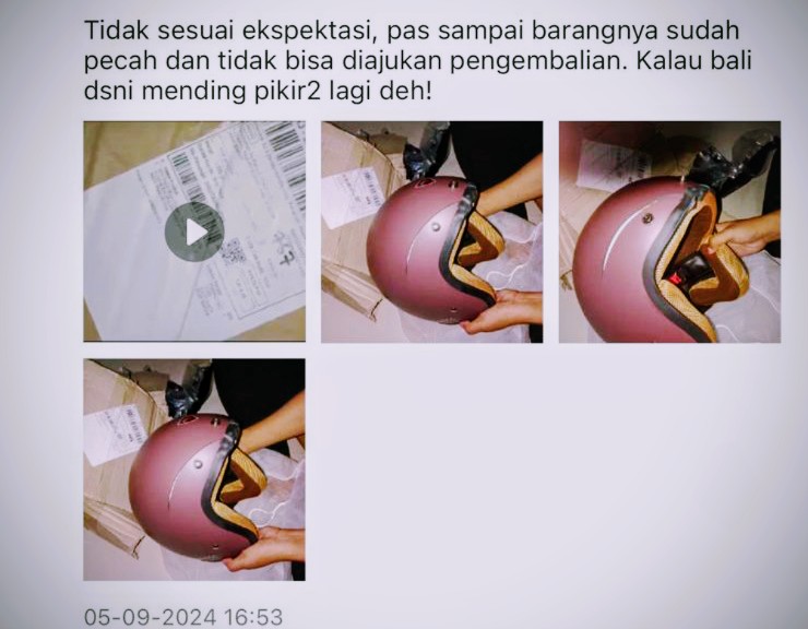 “Bukti yang saya laporkan kekecewaan pembeli online yang barang mudah pecah dan rusak saat pengiriman yang di unggah di medsos, selain itu barang helm yang sudah tidak di perdagangan sudah di teliti dan nyata SNI palsu,” ungkap Iwan Hartono.