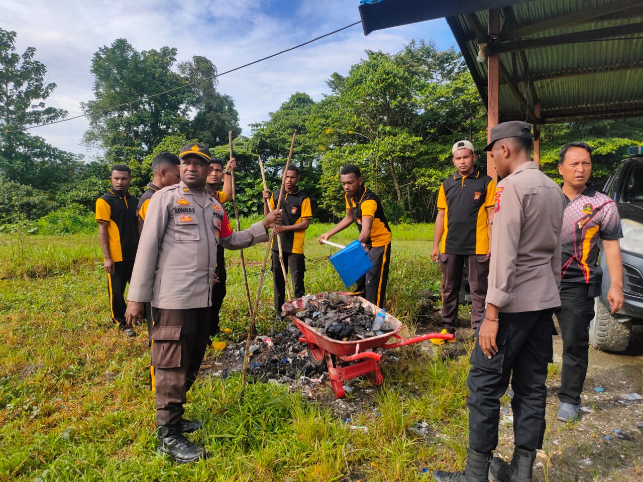 Burmeso, WIT – Keberadaan Mapolres yang nyaman tentunya akan memberikan manfaat positif bagi peningkatan mutu pelayanan dan memberikan semangat anggota dalam melaksanakan tugas dan tanggung jawabnya untuk selalu memberikan pelayanan yang terbaik yaitu pelayanan prima kepada masyarakat, oleh sebab untuk dapat mewujudkannya salah satunya dengan menjaga kebersihan di lingkungan Mapolres Mamberamo Raya, pernyataan Wakapolres Kompol Jubelina Wally S.H.,M.H saat memimpin apel pagi dilanjutkan kurvey, Jumat (07/07/2023).