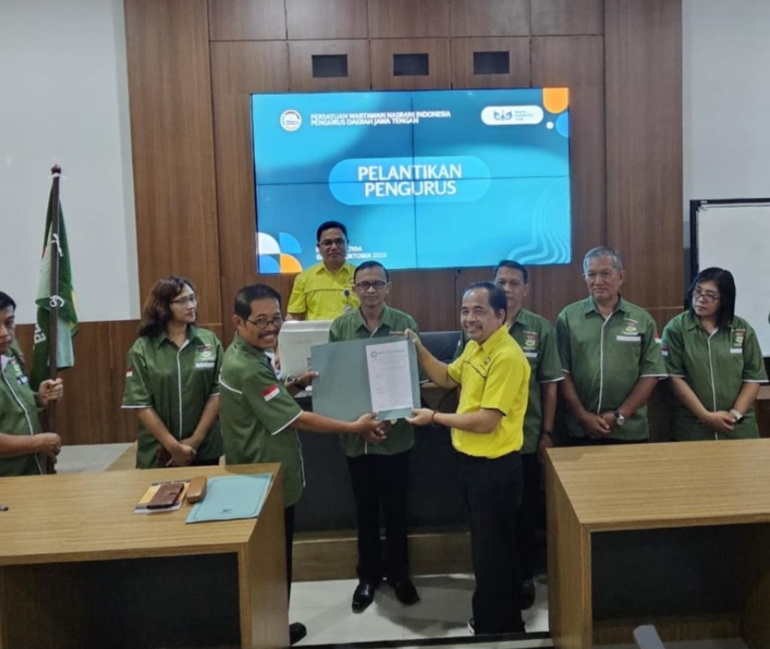 Salatiga, 18 Oktober 2025|wartaindonesiaterkini.com — Persatuan Wartawan Nasrani Indonesia (PEWARNA Indonesia) secara resmi melantik Pengurus Daerah (PD) Jawa Tengah masa bakti 2025–2030 dalam sebuah upacara yang berlangsung di Gedung B Fakultas Ilmu Sosial dan Komunikasi (FISUKOM) Universitas Kristen Satya Wacana (UKSW), Salatiga. Kegiatan pelantikan tersebut dirangkaikan dengan Rapat Kerja Daerah (Rakerda) bertema “Jurnalisme Berkejujuran serta Berkeadilan Mewujudkan Persatuan dan Cinta Kasih Anak Bangsa.”
