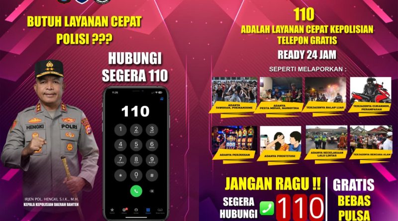 “Call Center 110 Polda Banten siap siaga 24 jam. Silakan laporkan kejadian apa pun di wilayah hukum Polda Banten. Laporan Anda akan segera kami teruskan ke satuan wilayah terdekat untuk penanganan cepat,” jelasnya.