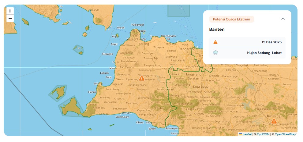 Serang|WIT – Polda Banten kembali mengimbau masyarakat untuk meningkatkan kewaspadaan terhadap potensi cuaca ekstrem berdasarkan pembaruan informasi dari Badan Meteorologi, Klimatologi, dan Geofisika (BMKG) Banten per Jumat, 19 Desember 2025.