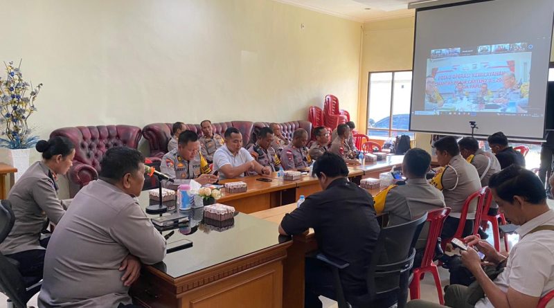 Papua – Satgas Ops Wil Papua Selatan bersama Satgas Ops Res mengikuti Rapat Analisa dan Evaluasi (Anev) Mingguan yang dipimpin Karendal Ops Operasi Mantap Praja Cartenz (OMPC) II 2024 Kombes Pol I Ketut G. Wijatmika, S.I.K.