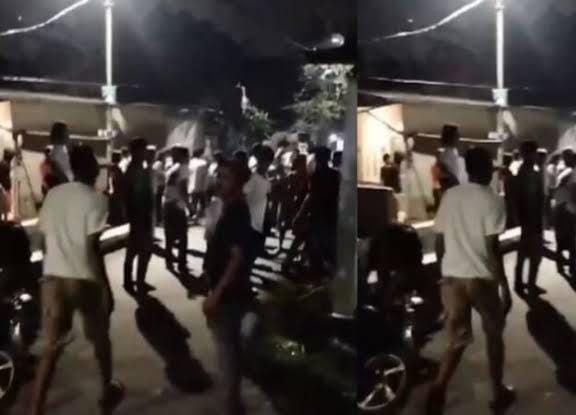 Pada pukul 19:30 massa mulai berkumpul setelah mendengar provokasi dari Ketua RT yang berteriak “Hei, bangsat, kalau kalian tidak bubar saya panggil warga”. Peristiwa terjadi pada pukul 19:30 WIB. Massa datang dengan membawa barang tajam berupa samurai, cerulit hingga balok.