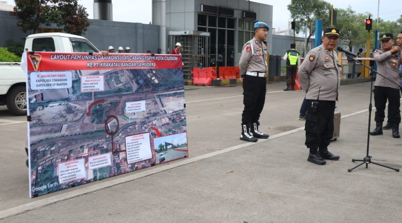 Cilegon|WIT – Polres Cilegon melaksanakan apel pengamanan aksi unjuk rasa yang dilakukan oleh Konsulat Cabang Federasi Serikat Pekerja Metal Indonesia (FSPMI) Kota Cilegon menuju PT Krakatau Bandar Samudera, Kegiatan pengamanan berlangsung sejak pukul 06.00 WIB hingga 18.00 WIB dan dipusatkan di kawasan PT Krakatau Bandar Samudera, Kota Cilegon. Kamis, 29/1/2026.