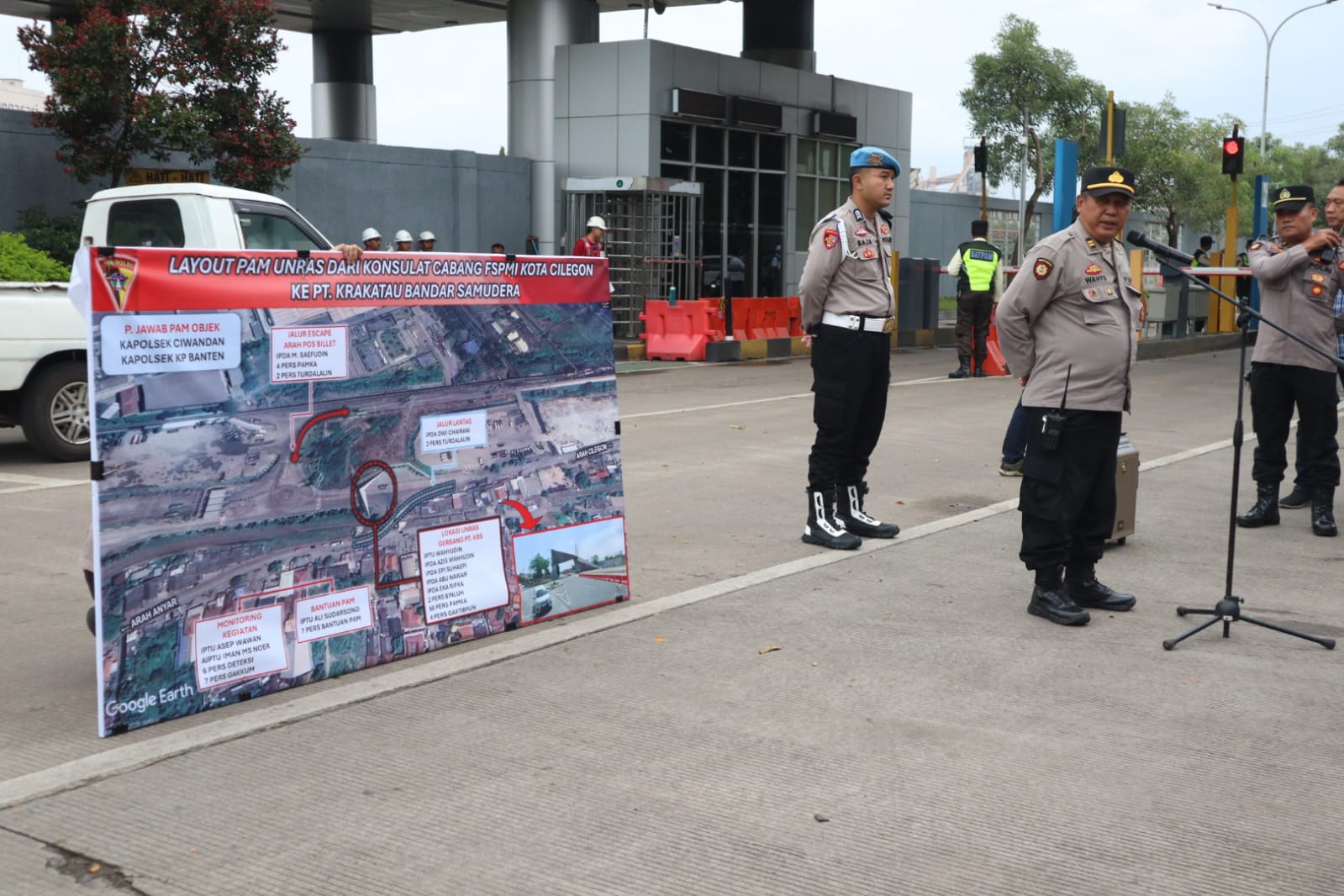 Cilegon|WIT – Polres Cilegon melaksanakan apel pengamanan aksi unjuk rasa yang dilakukan oleh Konsulat Cabang Federasi Serikat Pekerja Metal Indonesia (FSPMI) Kota Cilegon menuju PT Krakatau Bandar Samudera, Kegiatan pengamanan berlangsung sejak pukul 06.00 WIB hingga 18.00 WIB dan dipusatkan di kawasan PT Krakatau Bandar Samudera, Kota Cilegon. Kamis, 29/1/2026.