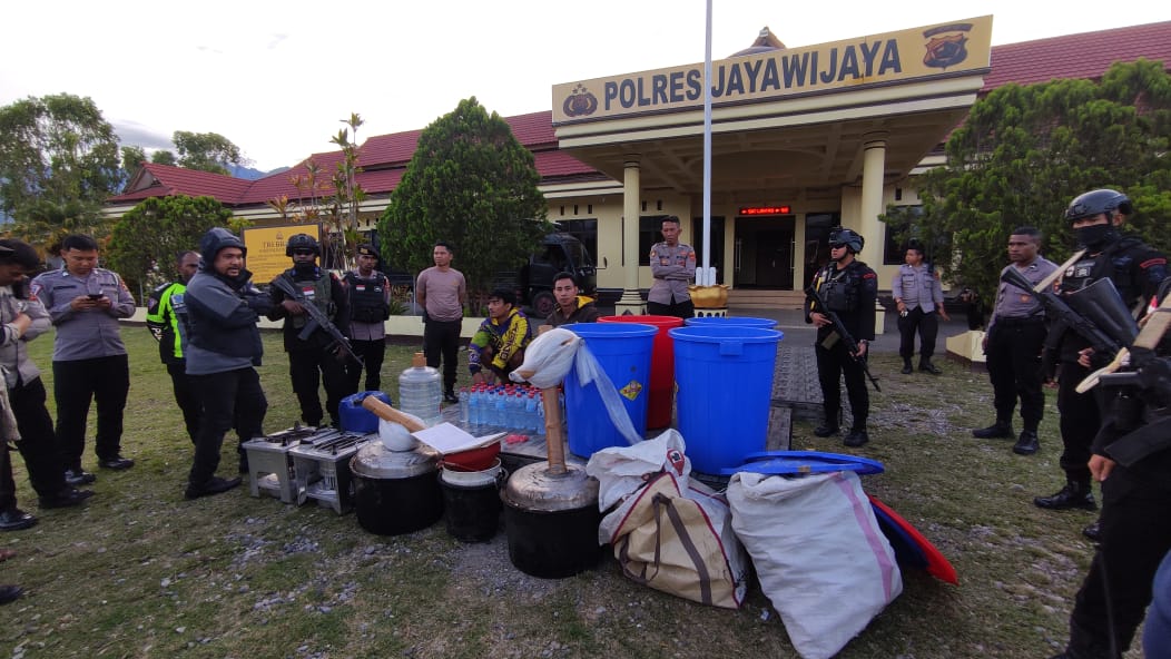 Kapolres menjelaskan bahwa keduanya diamankan bersama dengan barang bukti alat produksi Miras oleh tim Patroli Polres Jayawijaya saat melakukan razia terhadap tempat pembuatan minuman keras di Jalan Yos Sudarso Wamena sore tadi.