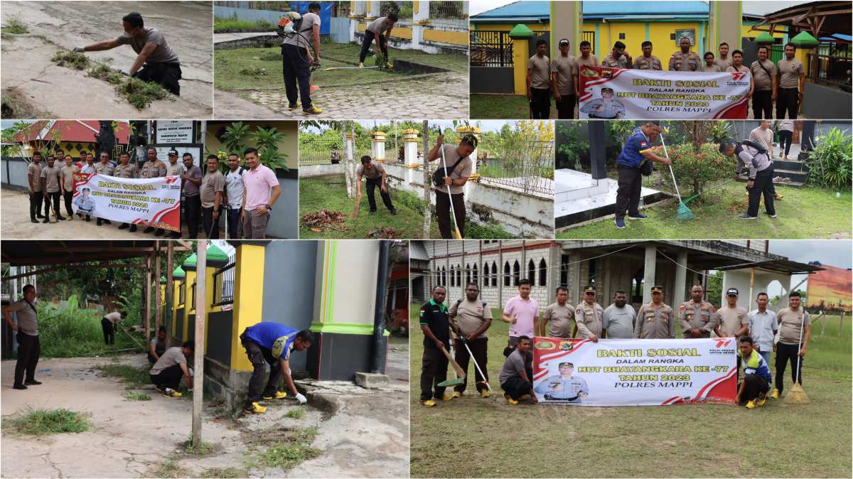 Mappi, WIT – Dalam menyambut Hut Bhayangkara Ke-77, Polres Mappi menggelar kegiatan bakti sosial dengan membersikan tempat ibadah, serentak di 3 titik yaitu Masjid, Pura dan Gereja. (15/06).
