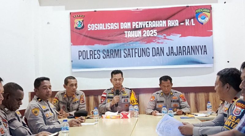 Sarmi – Polres Sarmi menggelar sosialisasi Daftar Isian Pelaksanaan Anggaran (DIPA) dan Rencana Kerja dan Anggaran Kementerian/Lembaga (RKA-KL) untuk tahun anggaran 2025 di ruang Vicon Polres Sarmi, Jum’at (24/1/25).