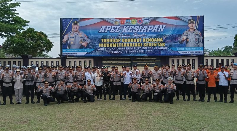 Serang|wartaindonesiaterkini.com–Dalam rangka mitigasi dampak bencana alam, Polres Serang menggelar apel kesiapan dalam rangka tanggap darurat bencana hidrometeorologi di Mapolres Serang, Rabu (5/11/2025). Apel kesiapan ini dipimpin Kapolres Serang AKBP Condro Sasongko dan dilaksanakan secara serentak dari tingkat Mabes Polri hingga seluruh Polres jajaran, Rabu, 5 Nopember 2025.