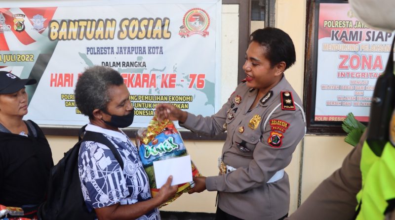 Lanjutnya, untuk Polresta Jayapura Kota kami laksanakan giat Bansos dengan menyasari para Tukang Parkir dan Mama-Mama Penjual Pinang serta para Pedagang Kaki Lima yang ada di seputaran Kota Jayapura dengan memberikan beras sebanyak satu karung 10 Kg dan Uang Tunai.