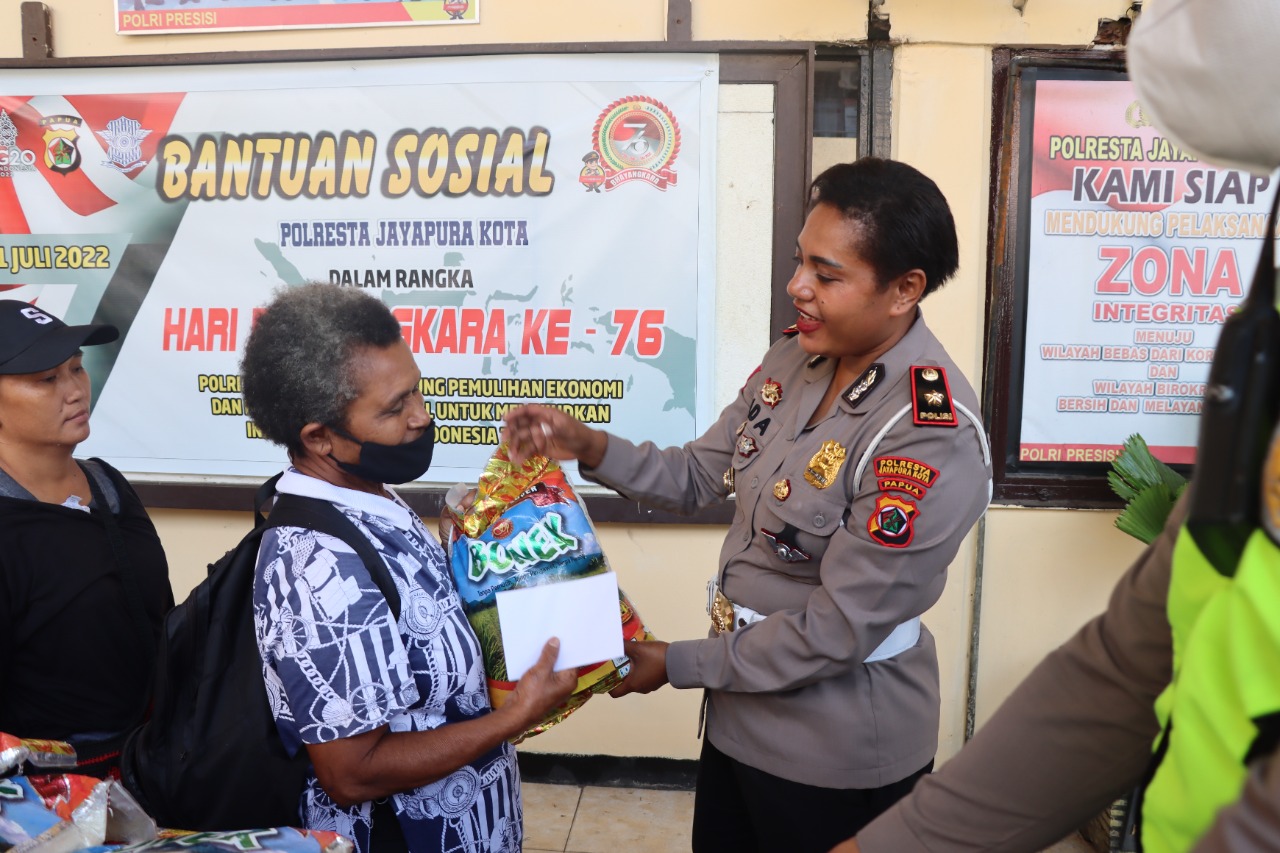 Giat Bansos tersebut diselenggarakan oleh Satuan Lalulintas Polresta Jayapura Kota dengan dihadiri Kapolresta Jayapura Kota AKBP Dr. Victor D. Mackbon, S.H., S.IK., M.H., M.Si didampingi Wakapolresta AKBP Supraptono, S.Sos., M.Si, Kasat Lantas Kompol Pillomina Ida Waymramra, S.E., S.IK., Wakasat Lantas Iptu Kasrun, S.H dan Para Tukang Parkir serta Pedagang Kaki Lima sekitar 30 orang.