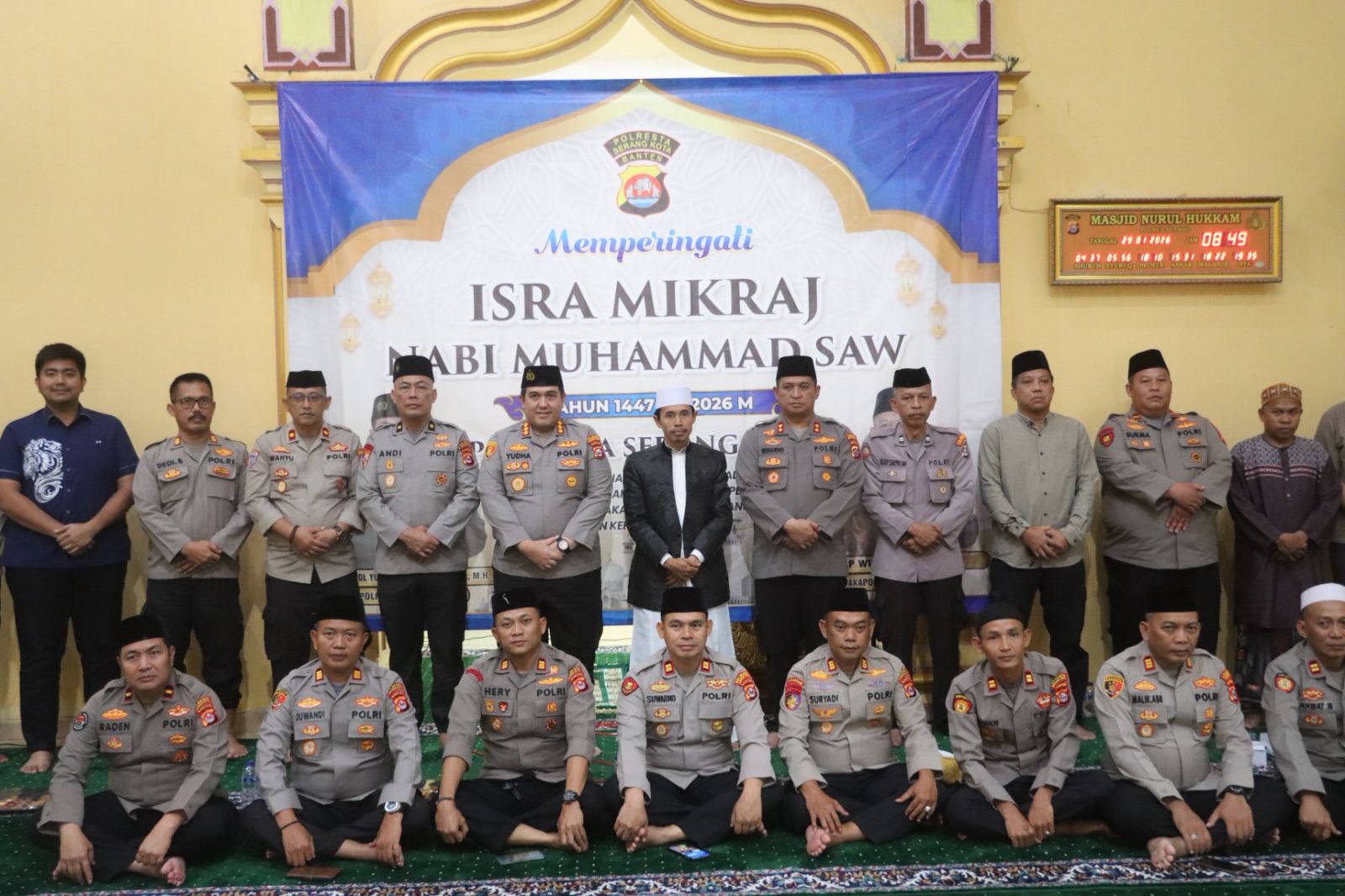 POLRESTA SERKOT | WIT–Kapolresta Serang Kota Kombes Pol. Yudha Satria, S.H., S.I.K., M.H., bersama Ketua Bhayangkari Cabang Serang Kota dan ibu-ibu Bhayangkari, Pejabat Utama (PJU), serta seluruh personel Polresta Serang Kota mengikuti kegiatan peringatan Isra Mi’raj Nabi Muhammad SAW Tahun 1447 H/2026 M yang dilaksanakan di Masjid Nurul Hukkam Polresta Serang Kota pada Kamis, 29/01/2026.