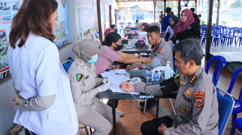 Papua – Dalam rangka menyongsong HUT Bhayangkara ke-78, Polda Papua menggelar kegiatan bakti kesehatan donor darah di Dermaga Polairud Polda Papua pada Kamis (6/6).