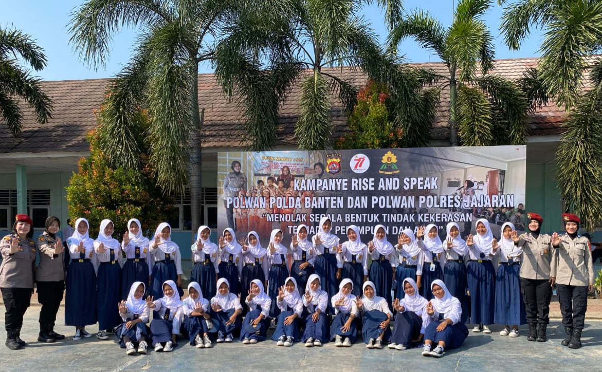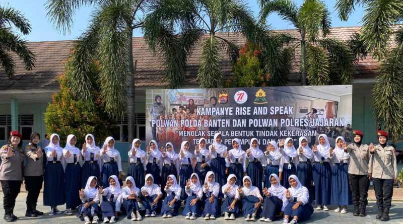 Serang|wartaindonesiaterkini.com – Polwan Polda Banten menggelar kampanye bertajuk “Rise and Speak” dengan tema Menolak Segala Bentuk Tindak Kekerasan terhadap Perempuan dan Anak yang ditujukan kepada para pelajar di SMPN 9 Kota Serang pada Senin (15/09).