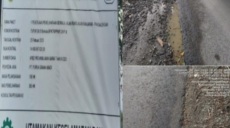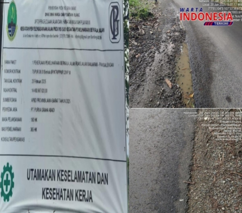Jawa Barat|wartaindonesiaterkini.com – Proyek Pemeliharaan Berkala Jalan Ruas Banjaran – Pangalengan bersumber dari Anggaran Pendapatan Daerah Provinsi Jawa Barat (APBD JAWA BARAT) Tahun 2025 dengan Nilai Pagu anggaran sebesar Rp.14.493.967.620,pengalengan, Kabupaten Bandung,Jawa Barat.